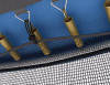 Защитный мат для пружин, расположенный по периметру батута, состоит из четырех слоев, обшитых ПВХ материалом, плотностью 130 г/см3 и надежно закрывает пружины.